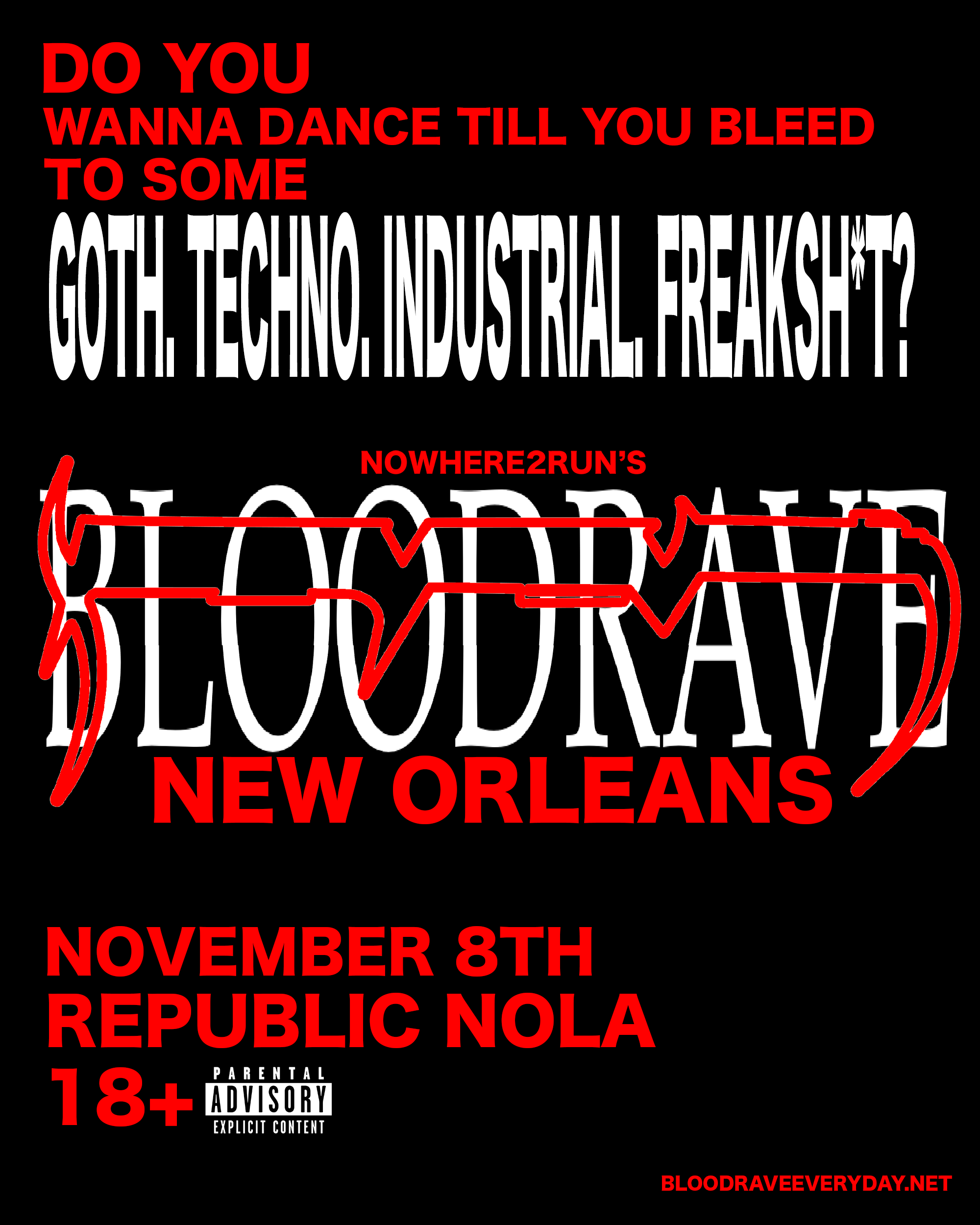 Do you wanna dance till you bleed? Are you tired of vibeless themed dance nights? Welcome to BLOODRAVE, a new goth/techno/industrial dance night that puts you at the center of your favorite neo futuristic dystopian rave scene. Killer DJs, special vampiric drinks, the occasional wailing guitar, and fiery cage dancers are just some of what you can expect for a night of debauchery you will never forget.
