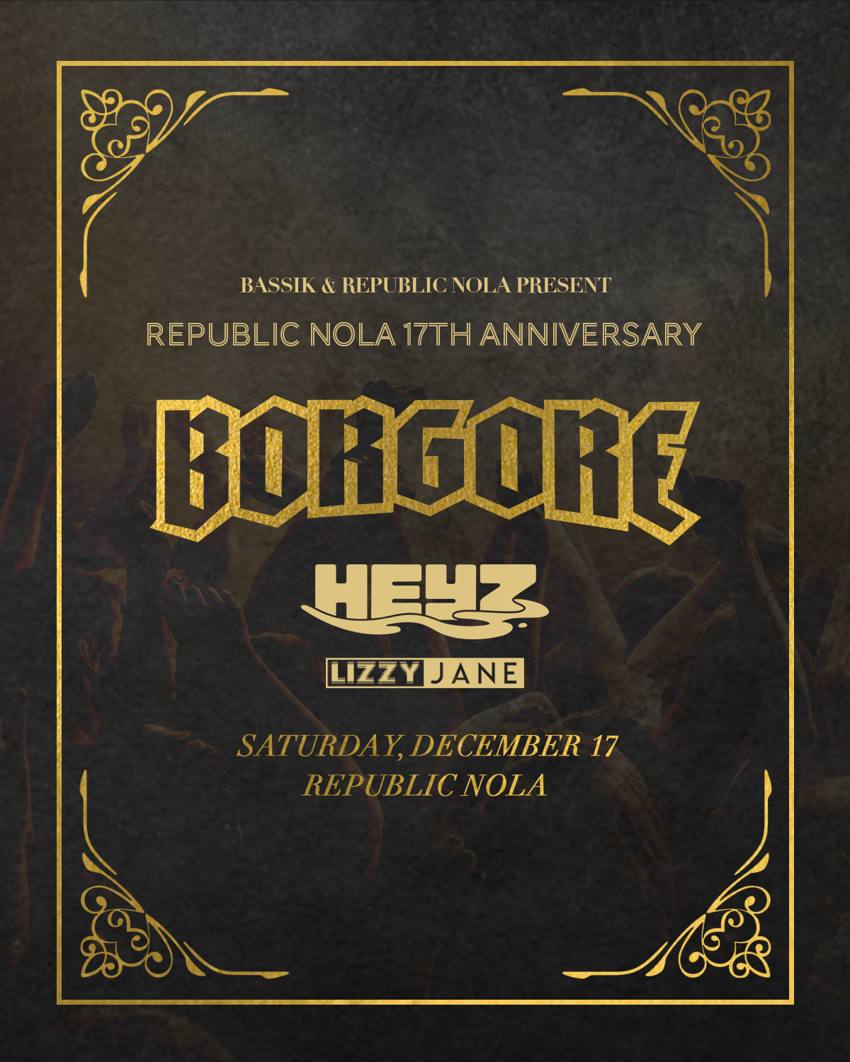 BORGORE returns for Republic's 17th Anniversary with HEYZ and Lizzy Jane on Saturday, December 17th! Get your tickets NOW!