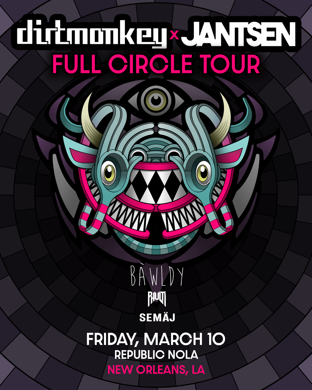 Dirt Monkey and Jantsen's 'Full Circle' Tour will be here on March 10 with support from bawldy, Phulti, & Semaj! Get your tickets NOW!