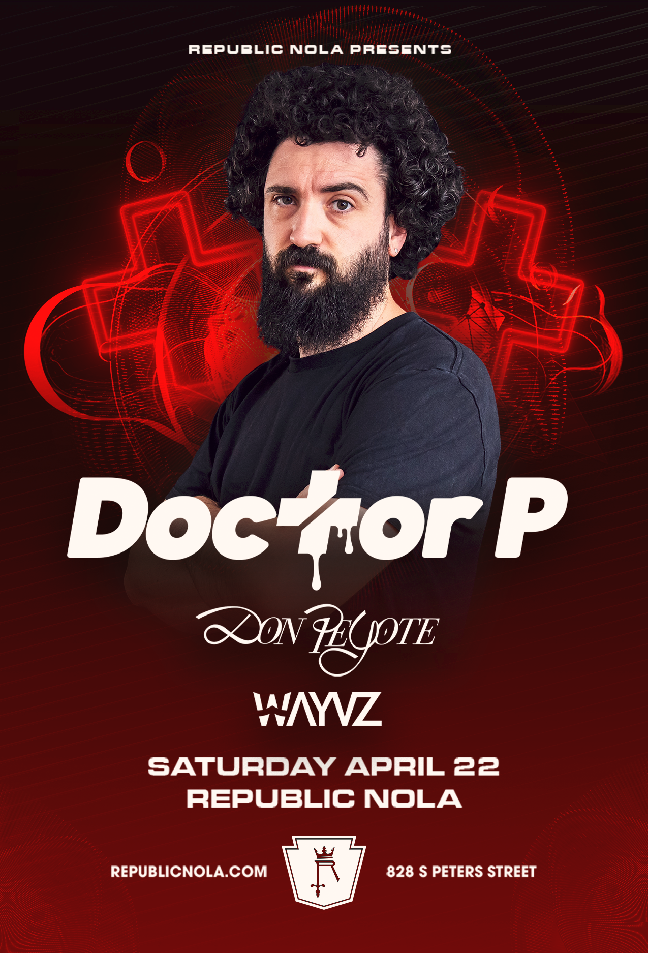 We've got a fever, and the only prescription is... MORE DUBSTEP! The OG Doctor P is coming to Republic NOLA on Saturday, April 22 + support from Don Peyote & WAYVZ! Snag those tickets NOW!