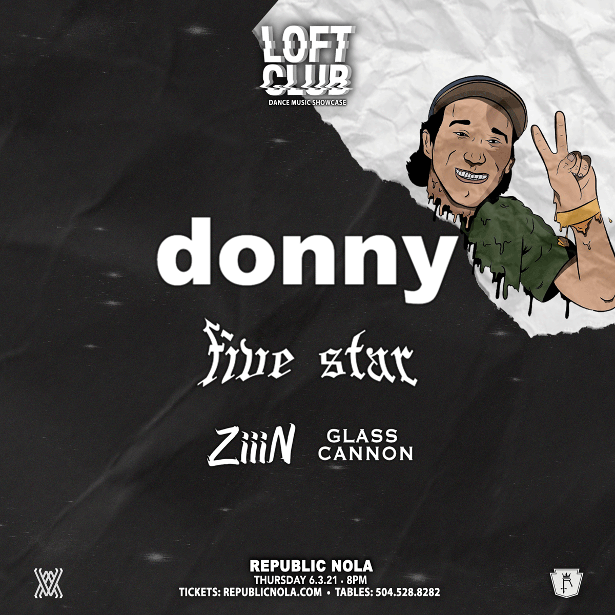 Don't miss LOFT CLUB featuring Donny, Five star, Ziiin and Glass Cannon on Thursday 6/3/21 at Republic NOLA!