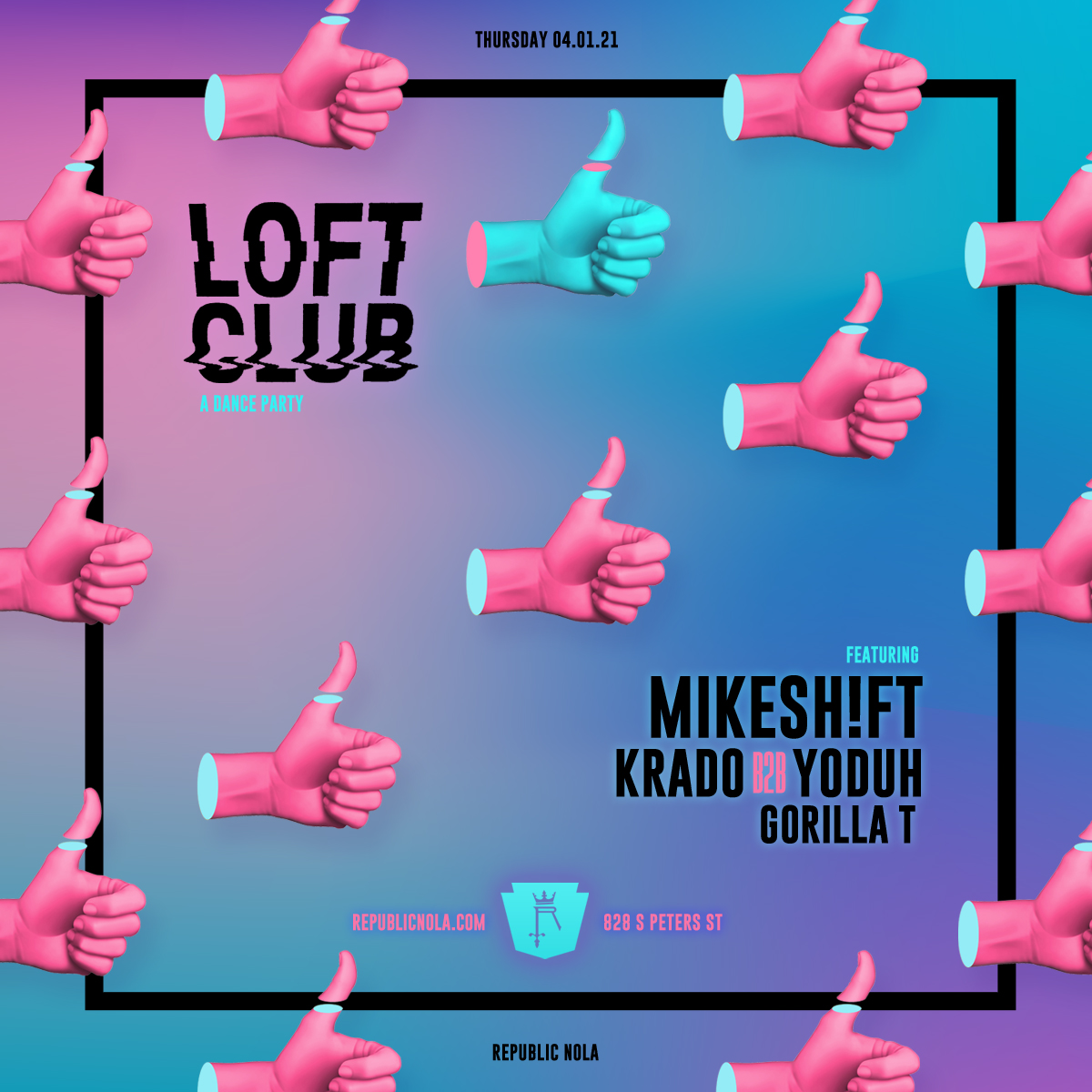 Don't be a fool! Catch sets by Mikesh!ft, Krado b2b Yoduh, & Gorilla T at LOFT CLUB on Thursday 04.01.2021 at Republic NOLA!