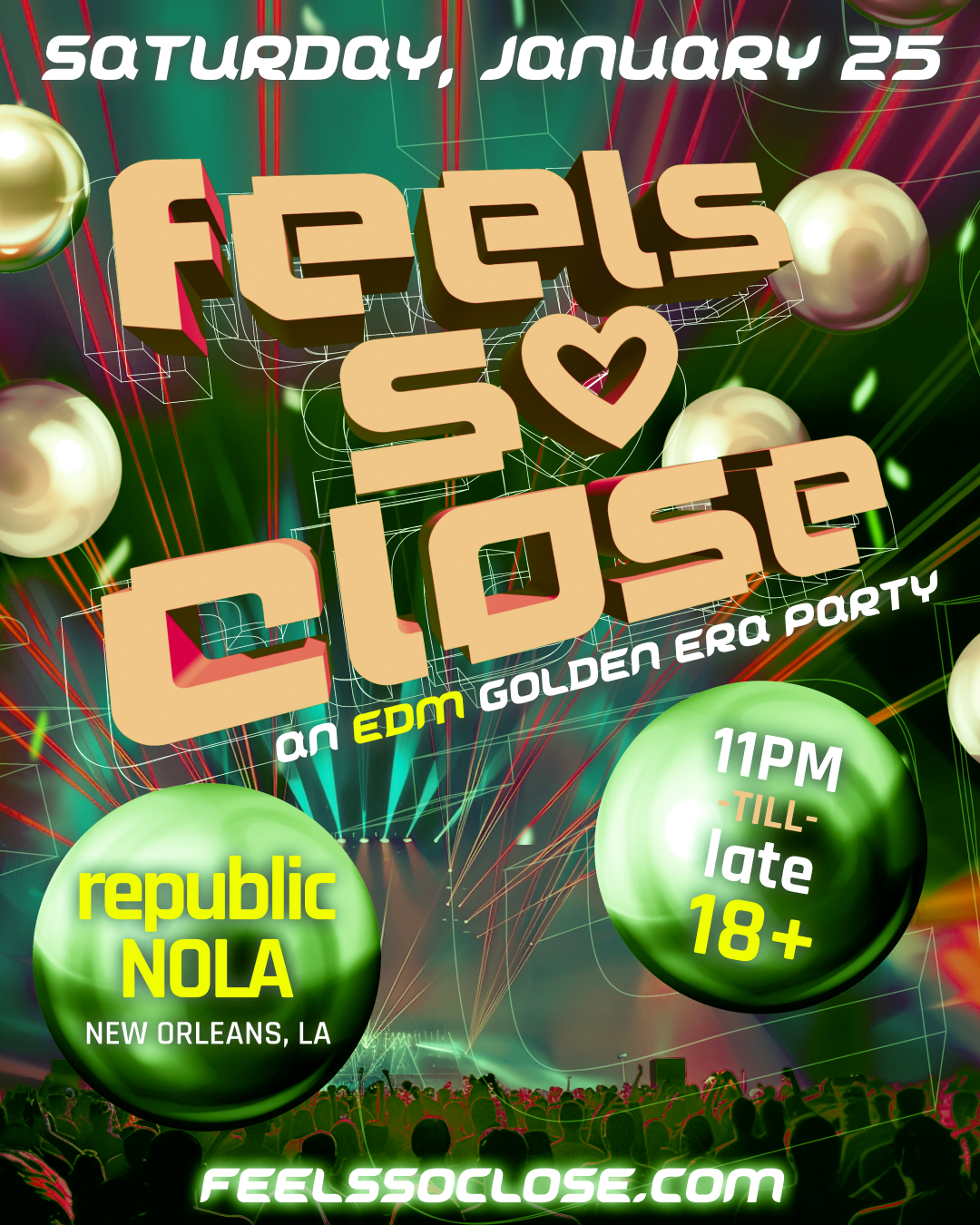 Feels So Close is here to celebrate the golden era of EDM. Come get lost in the lights and fall in love all over again with the music that led us here. This is made from our own experiences. The festivals, the friends, those big moments.