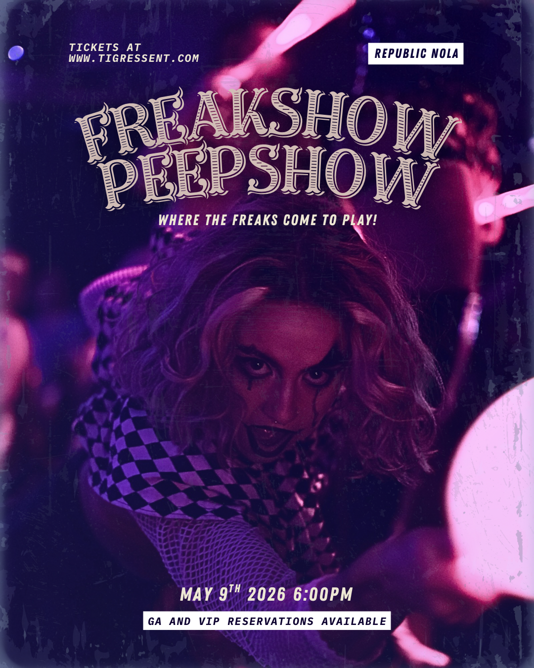 Produced by Tigress Entertainment, held at Republic Nola, prepare yourself to become hypnotized by an electrifying blend of burlesque, circus acts, fire, and dancing that will leave you feeling freaky all night long!