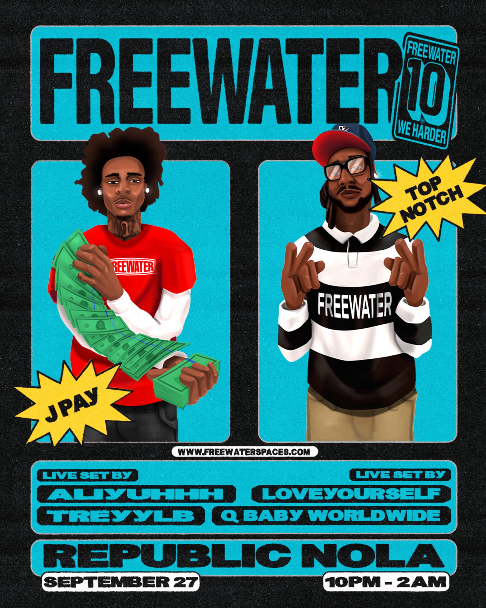 Full circle moment - FREEWATER is celebrating 10 YEARS back where it all began! Don’t miss this massive ANNIVERSARY PARTY at Republic NOLA on SATURDAY 9.27.25! Expect vibes that only FREEWATER can bring with J PAY + TOP NOTCH!