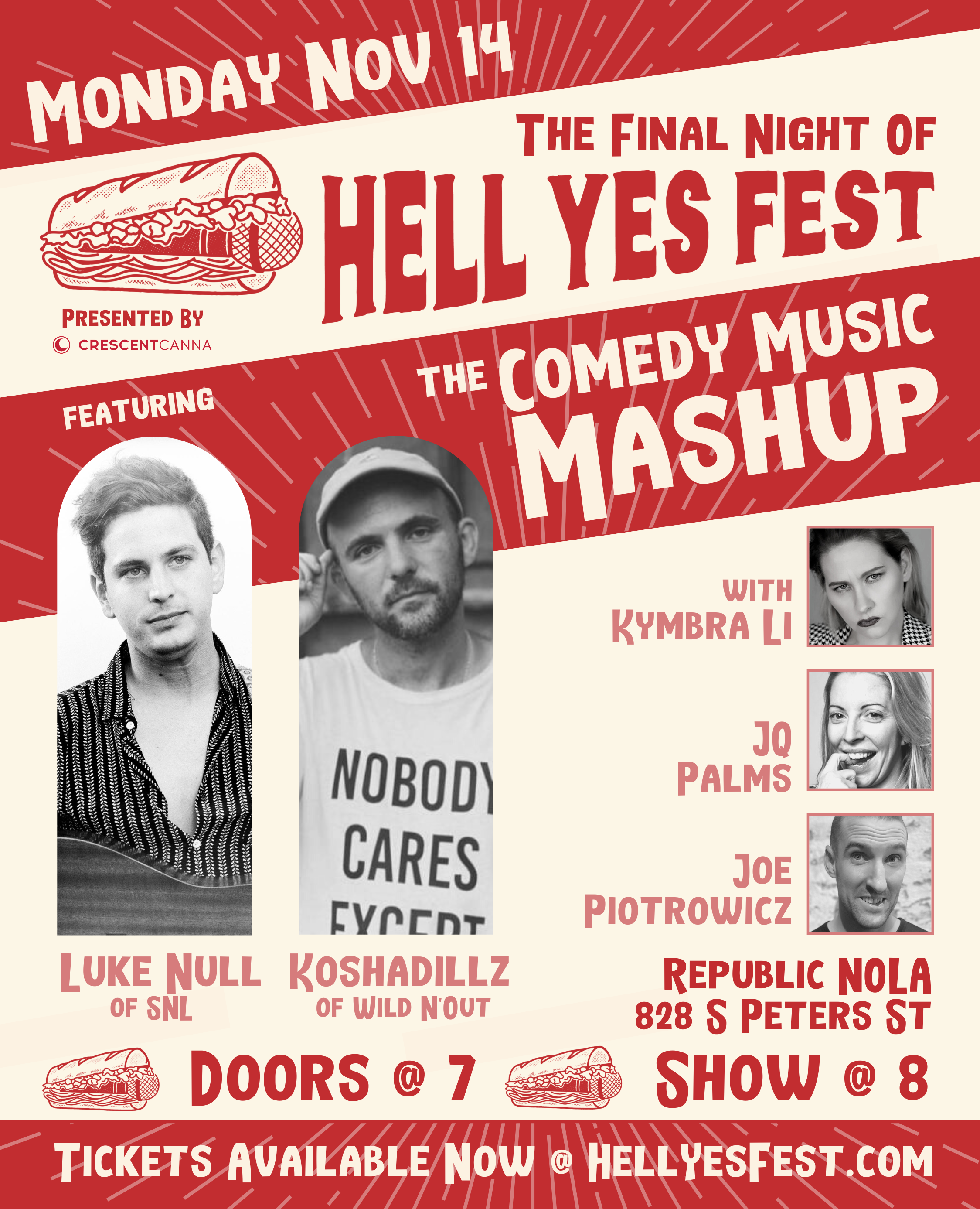 The final night of Hell Yes Fest features an ALL-MUSIC lineup with performers you've seen on Saturday Night Live and MTV's Wild N'Out! Don't miss performances from Luke Null, Koshadillz, JQ Palms, Kymbra Li, and Joe Piotrowicz on Monday, November 14th! Get your tickets NOW!