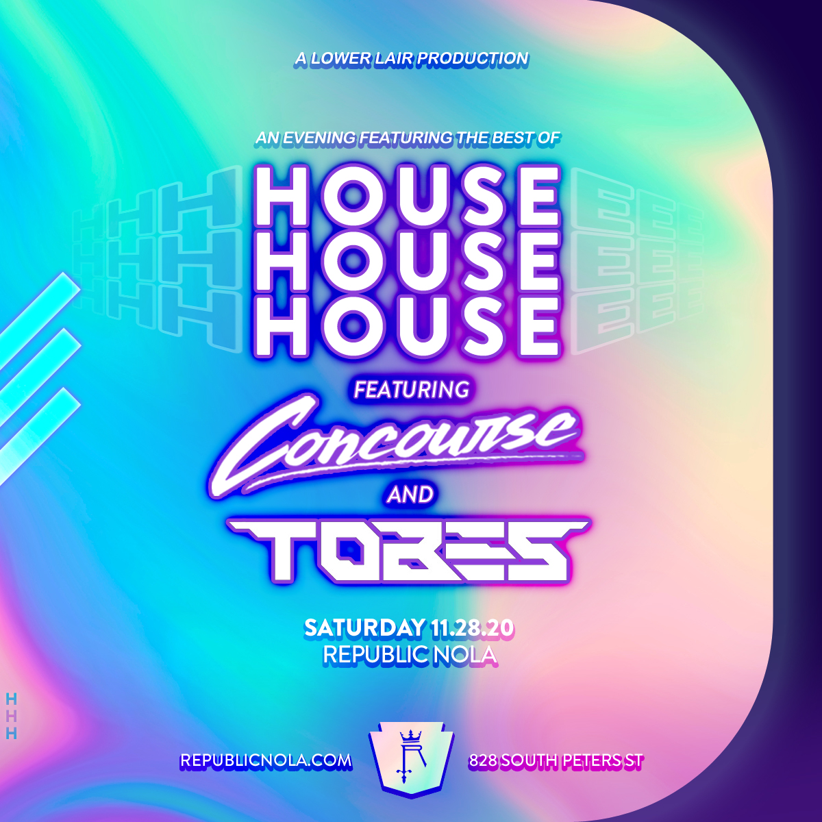 A picture is worth a thousand words, but who needs a thousand words when you can get the message across with three? HOUSE HOUSE HOUSE ft Concourse & Tobes is Saturday 11/28!