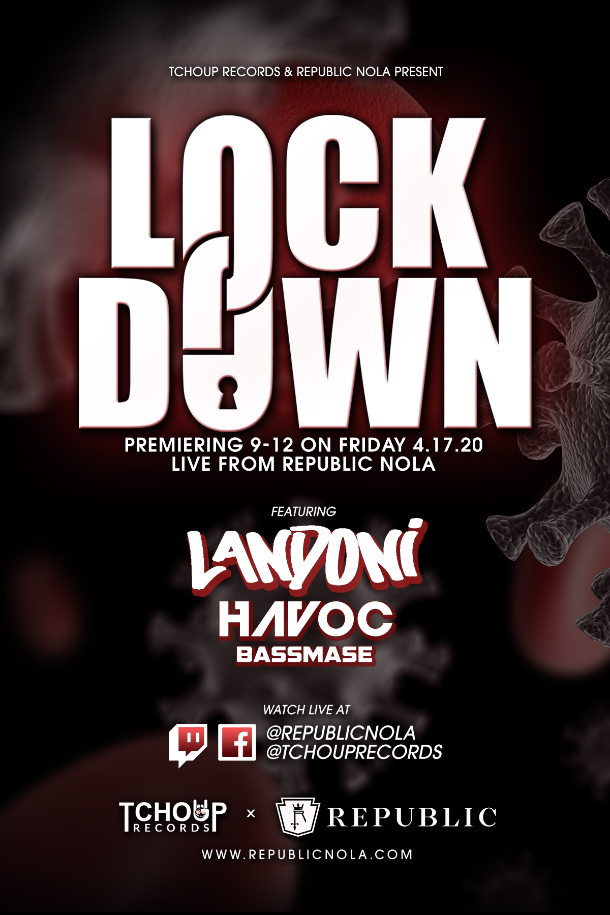 Just because everyone is stuck at home doesn't mean we can't have the best time possible! Introducing, LOCKDOWN! A virtual live concert series taking place straight from your home away from home, Republic NOLA! We've combined forces with Tchoup Records to bring you the highest definition & most electrifying concerts the internet has seen, featuring Havoc, BassMase, and Landoni, straight to your screens at home! The series premiers on Friday 4/17 at 9 pm on our Facebook, Tchoup Record's Facebook, and Twitch both @republicnola & @tchouprecords!