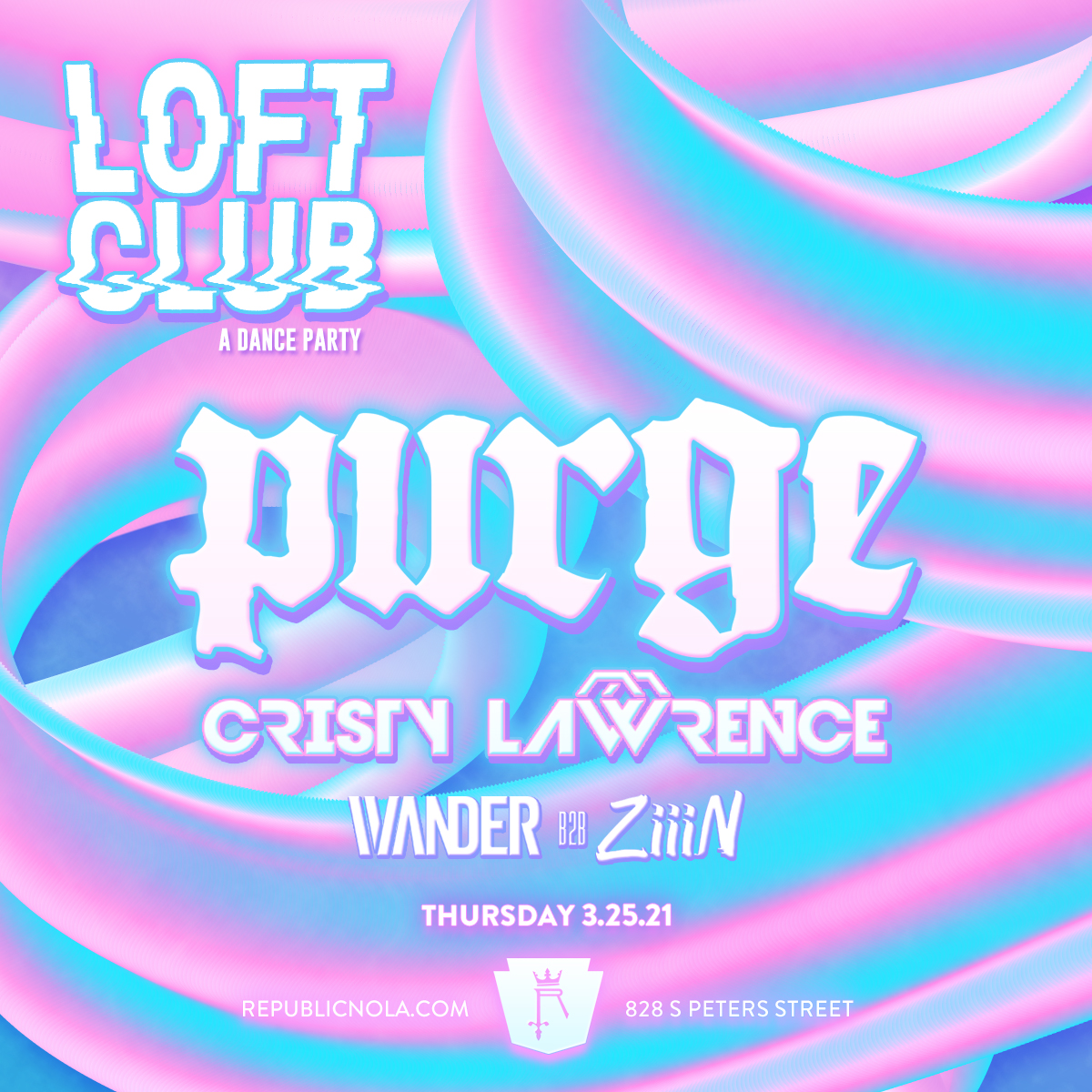 Don't miss LOFT CLUB: PURGE TAKEOVER featuring PURGE, Cristy Lawrence, and Wander b2b Ziiin on Thursday 03.25.21 at Republic NOLA!