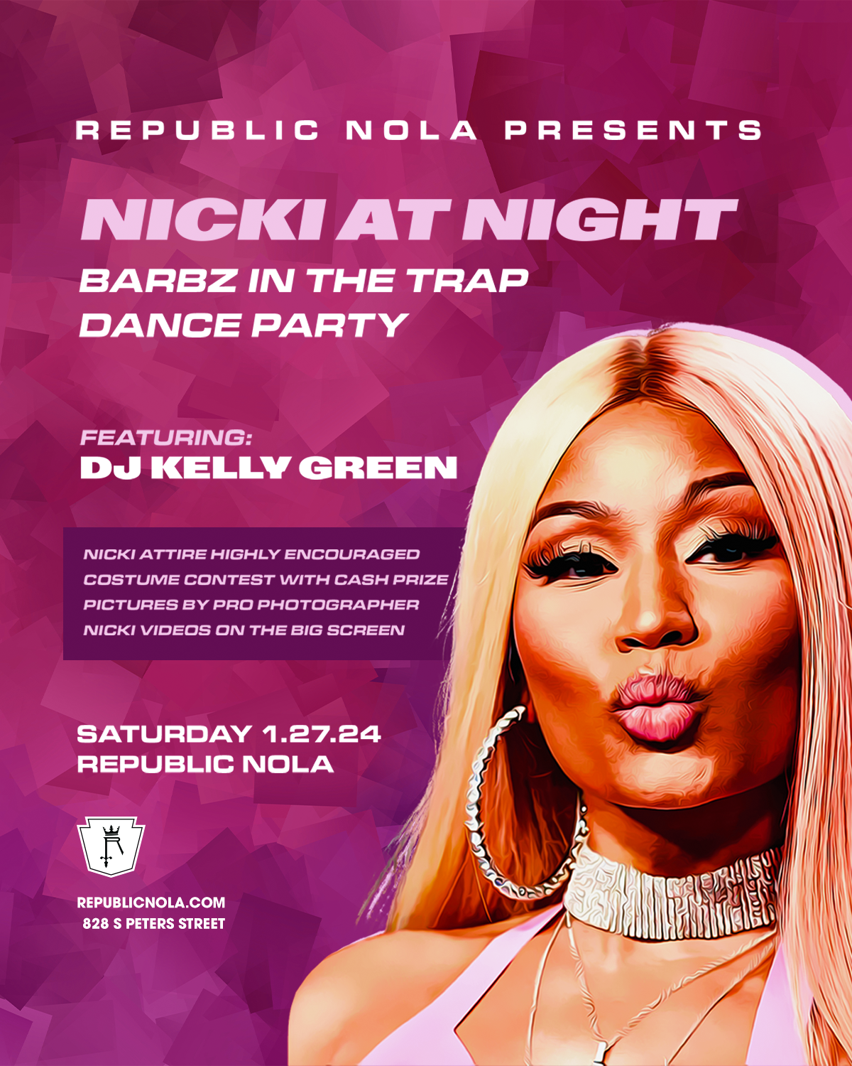 Okay barbz, 'Pound the Alarm'... It's time to 'FTCU' on Saturday 1.27 as we enter 'Barbie World' with the sounds of NICKI MINAJ ALL NIGHT by DJ Kelly Green! Dress up like Nicki, get ready for the 'Super Bass' and grab all your 'Super Freaky Girl's to enter the Costume Contest for a CASH PRIZE! Grab your tickets ASAP to 'Beez in the Trap' with us for a very low price!!! GET YOUR TICKETS NOW!