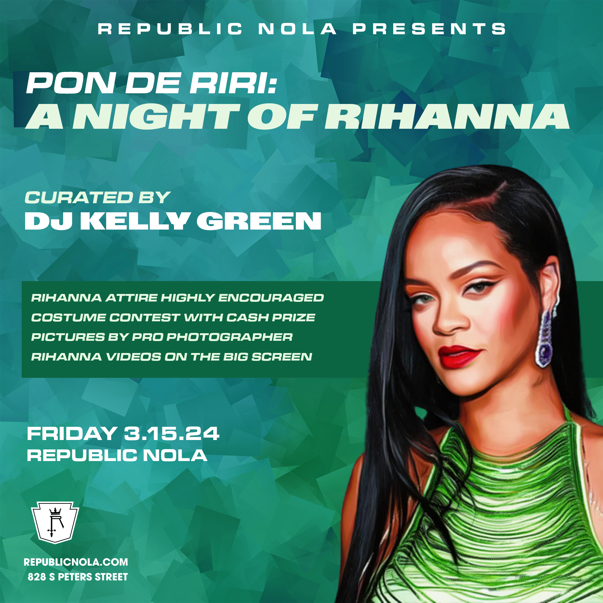 Please 'Don't Stop the Music' as we go 'Dancing In The Dark' to the sounds of the queen Rihanna, curated by DJ Kelly Green on Friday 3.15! Grab your 'Rude Boy' and 'Shut Up and Drive' over here to enter into our COSTUME CONTEST for a chance to win a CASH PRIZE! Gather the gals &  your 'Diamonds'... It's time to 'Pour It Up'! Grab your tickets NOW for just $5!