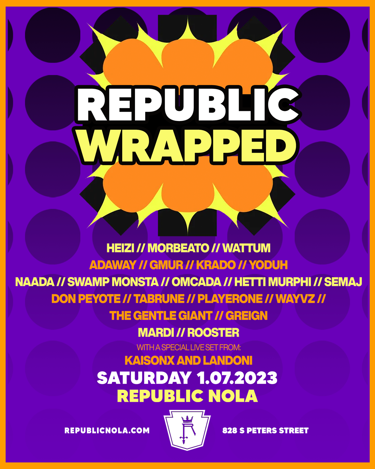 Presenting... REPUBLIC WRAPPED! Some of our best locals who performed throughout 2022 are teaming up to showcase their talents on Saturday, January 7th! Here are your teams: