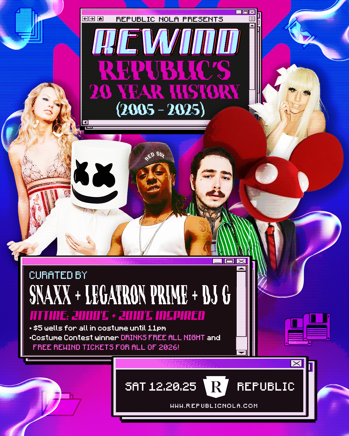 Costume Contest winner DRINKS FREE ALL NIGHT, and FREE REWIND tickets for all of 2026!