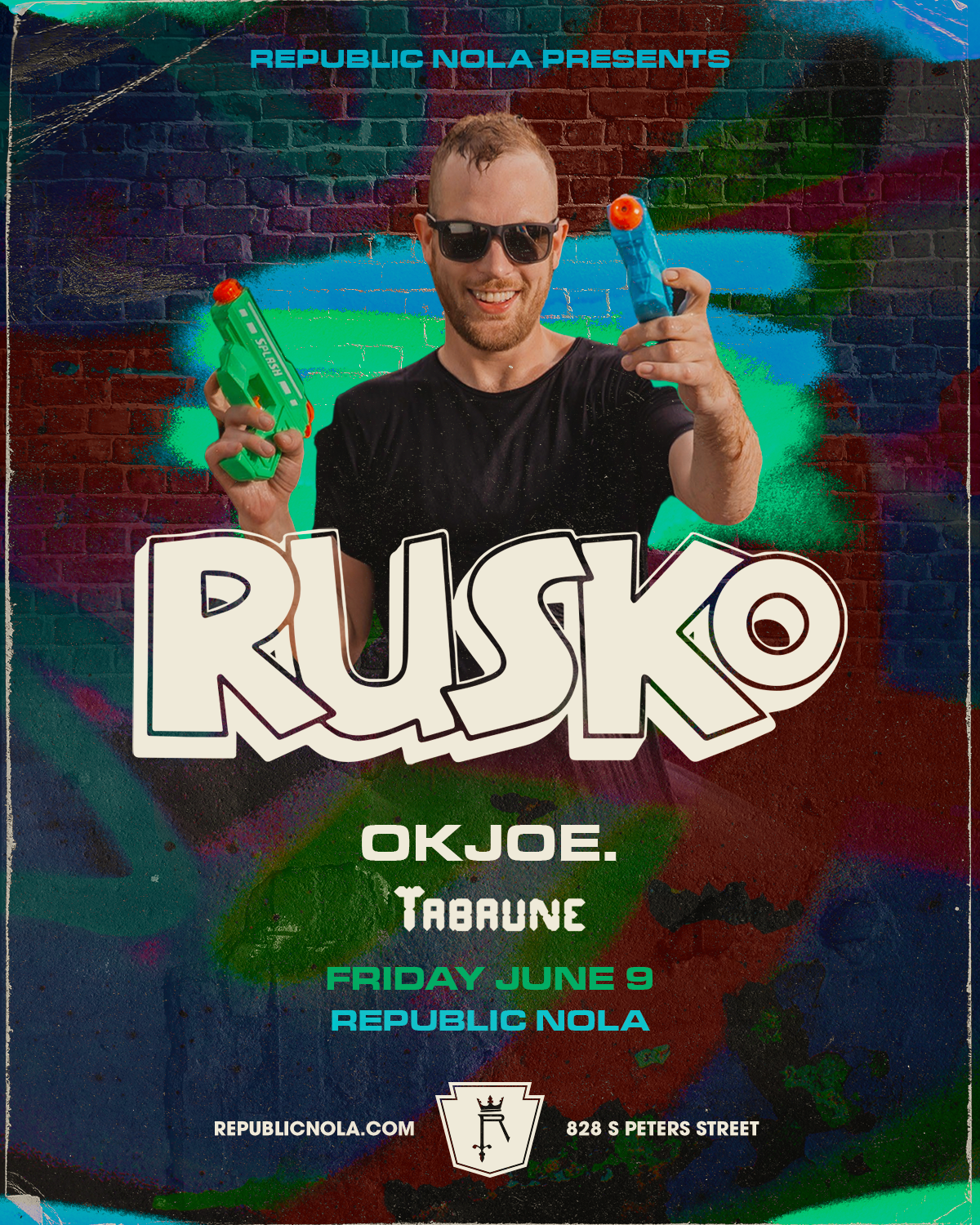 Rusko is splashing through NOLA on Friday, June 9th with support from okjoe. + Tabrune ! Tickets on sale NOW!