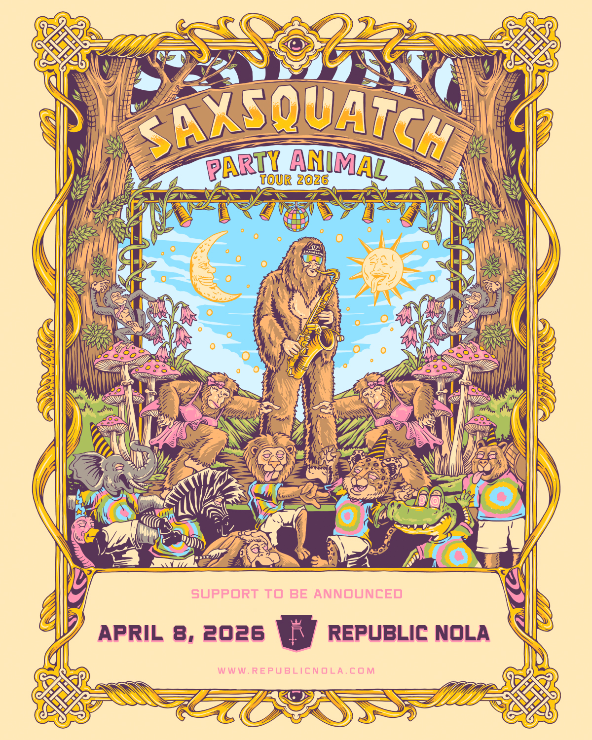 The legend is real — and he’s bringing the PARTY. Saxsquatch returns to Republic with his "Party Animal" Tour on Wednesday  4.08.26! From viral collabs with John Oates & Billy Ray Cyrus to music in Rocket League and Fortnite, Saxsquatch is the 7’ tall cryptic superstar who’s sold out shows nationwide and lit up Rolling Stone & Forbes. His live set is a wild mix of sax solos, original tracks, remixes, lasers, and pure party chaos you won’t forget.