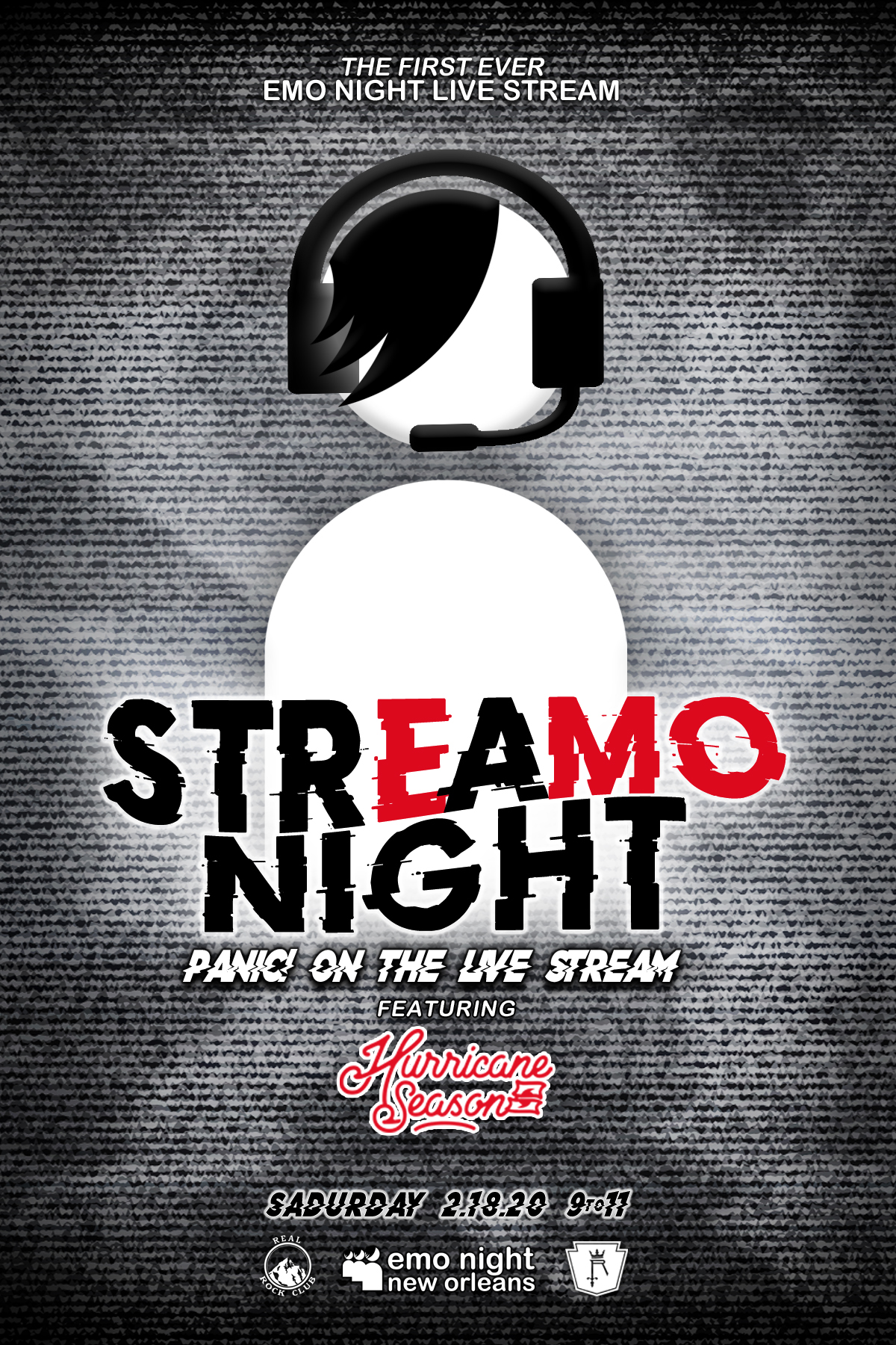 Just when you thought depression was a seasonal thing, the entire world is SHUT DOWN, but that won't stop the Emo Night New Orleans crew from giving you your much-needed dose of gut-wrenching emotional bangers! Tune in on Facebook & Twitch on Saturday 4/18 for Panic! on the Live Stream, the premier of our virtual Emo Night experience, StrEaMO Night! Cry from the comfort of your own home with the gift of memories past delivered straight to your screen from your resident Emo boys, Hurricane Season! Slam dance without pants, start a moshpit in your living room with small children and your cat, scream at a wall! Your StrEaMO Night experience is what YOU make it! The feels go live at 9 pm on Saturday 4/18, make sure you're there!