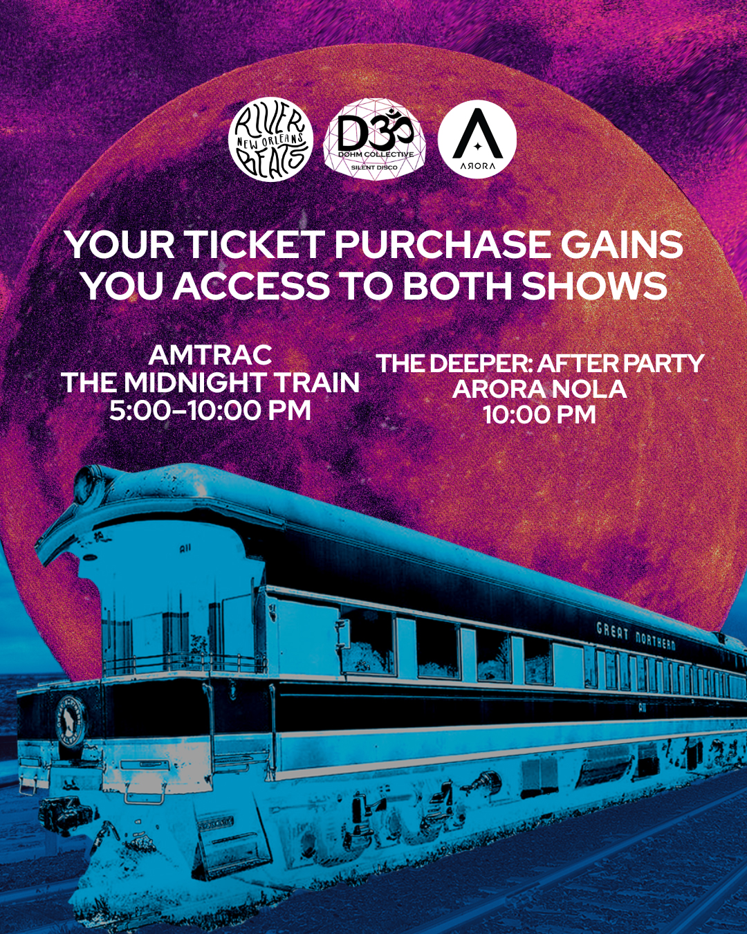 VIP COMBO tickets for both shows, The Midnight Train and ARORA NOLA! VIP grants access to the Train including a private bar and seating at the first show plus seating at the second show!