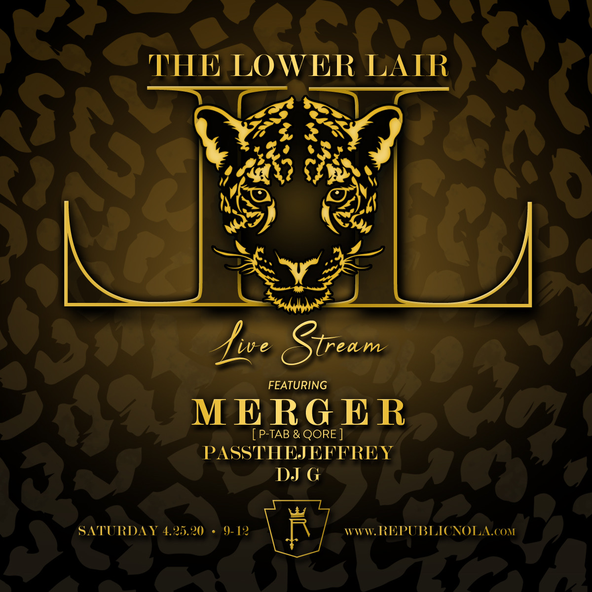 Calling all trendsetters to return to The Lower Lair for our first online experience; an immersive stream featuring a live house & nu-disco soundtrack by Merger (P-Tab & Qore), PassTheJeffery, & DJ G. Take the leap again with us on 4/25 on our Facebook and Twitch pages!
