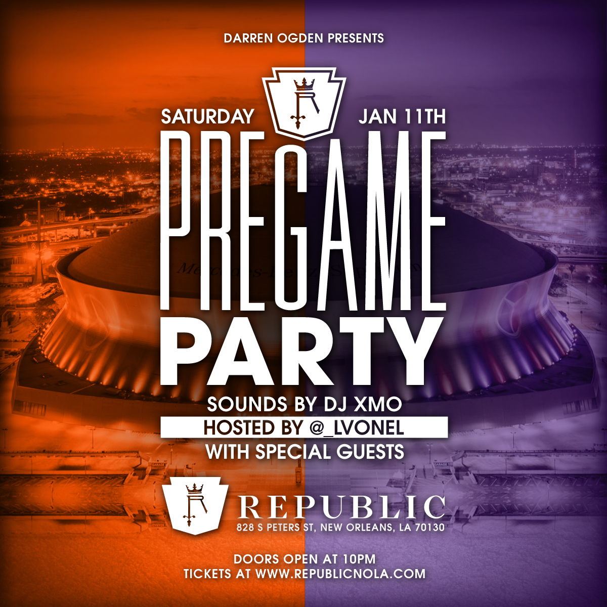 Don't miss the National Championship Pregame Party on Saturday 1/11 powered by Republic NOLA, Darren Ogden, and NOLAZINE TV!