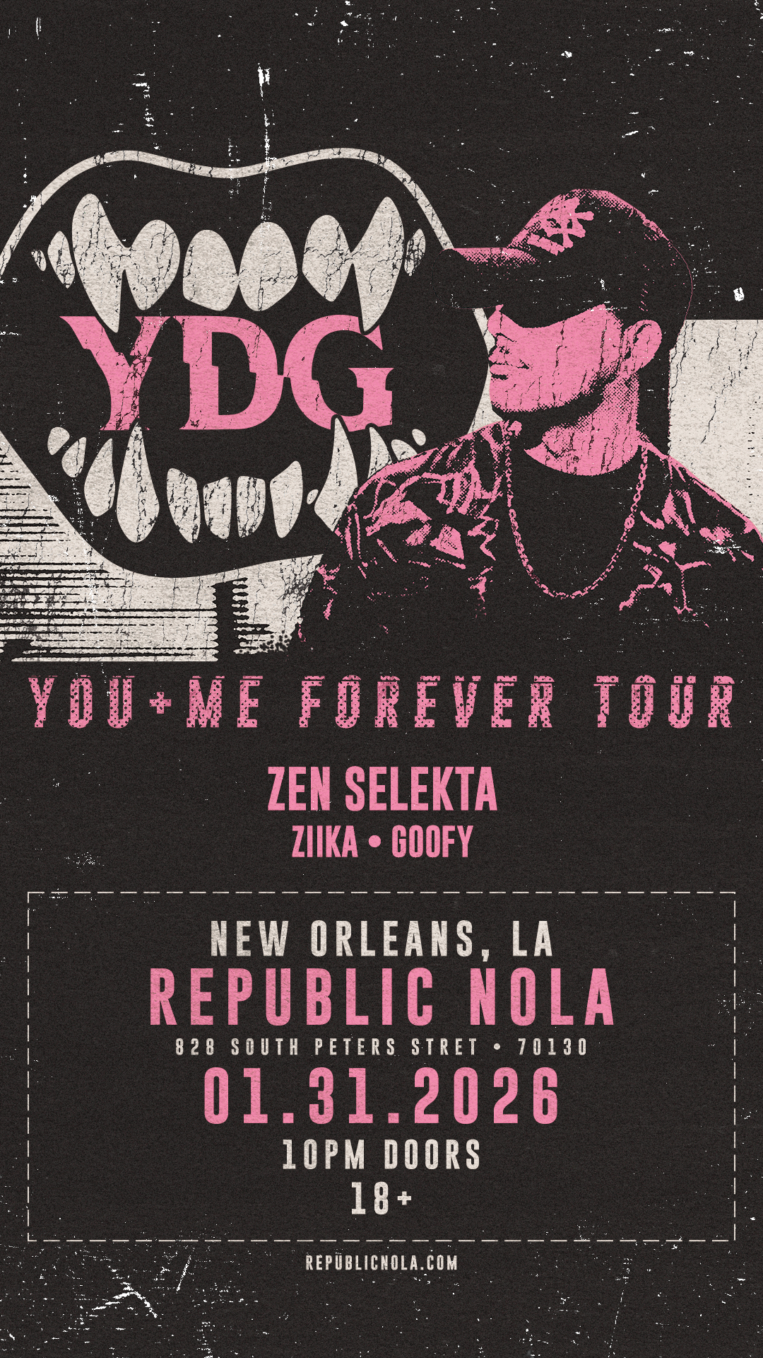 Original YDG ticket purchases will be honored on the new date. If you’re unable to attend on 4/3 and would like to request a refund, email Info@Republicnola.com by 6pm on 2/6 (one week from now)!