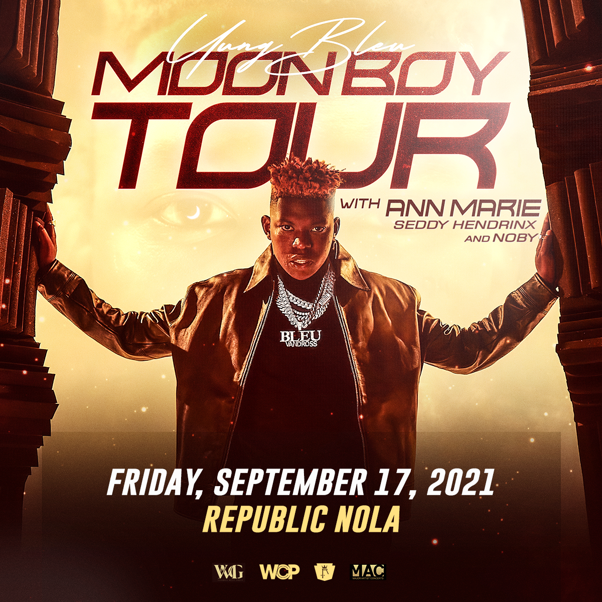 Due to the ongoing effects of Hurricane Ida, the Yung Bleu show at Republic NOLA on September 17, 2021, has been canceled. If you purchased your tickets via Eventbrite online, a refund will automatically be issued to the credit card you used to purchase within 30 business days. Otherwise, refunds are available at your original point of purchase.