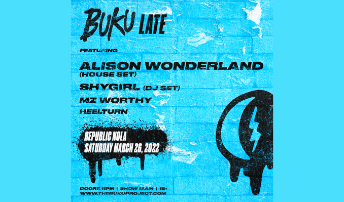BUKU LATE x Republic NOLA Presents: Alison Wonderland (House set), Shygirl (DJ), Mz Worth, Heelturn on Saturday, March 26th!